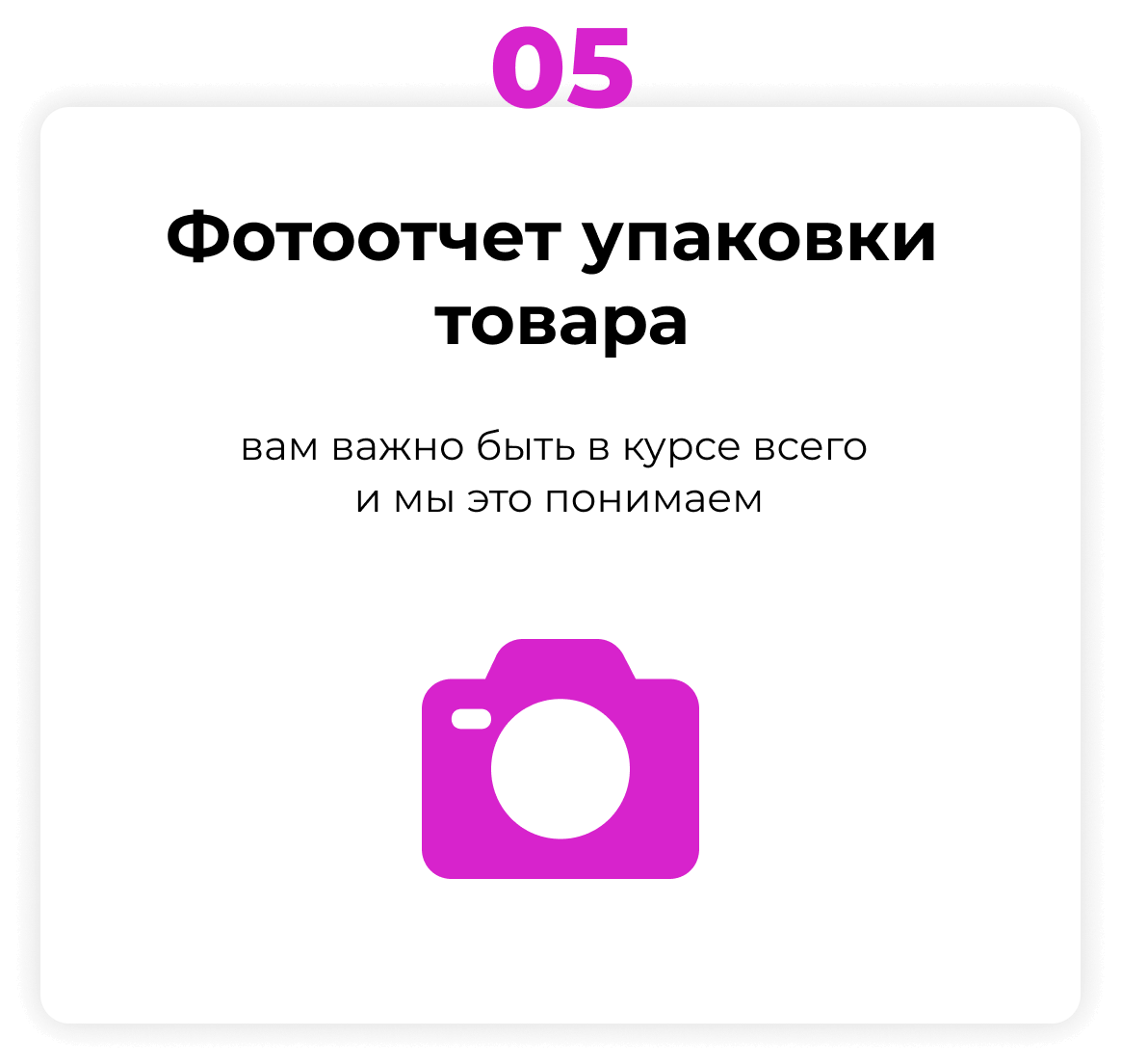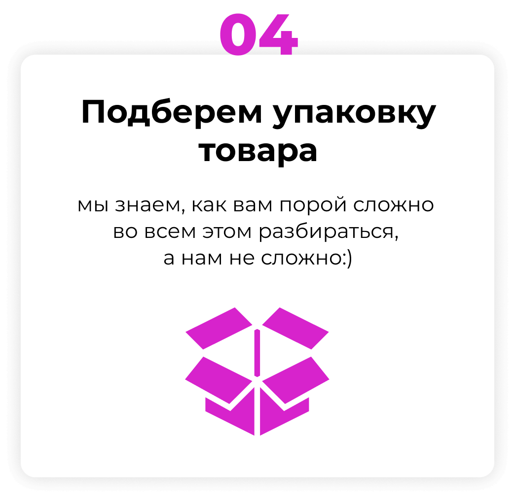 Упаковка товара - один из ключевых этапов в процессе доставки товара конечному потребителю. Мы применяем разнообразные виды упаковки: картонные коробки, пакеты с zip-lock, БОПП-пакеты, пузырьковую плёнку, рукав, стрейч-плёнку и многое другое. Наши упаковщики аккуратно упаковывают товар, чтобы гарантировать его сохранность во время перевозки. Также мы наносим этикетки со штрихкодом и информацией о товаре, следим за качеством упаковочных материалов и их соответствием требованиям заказчика. Кроме того, мы используем видеонаблюдение для контроля процесса упаковки и предотвращения возможных ошибок.